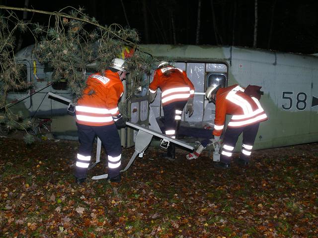Wunstorf.Wenn es ein solches Unglückgeben würde,wie die Feuerwehr es am Dienstagabendsimuliert hat,dann käme die Stadfeuerwehr an Ihre Grenzen.260 Feuerwehrleute waren im Einsatz bei der größten Übung seit etwa 20 Jahren.Das Szenario war der Absturzeines Flugzeuges,wodurch ein großes Gebäude auf dem Fliegerhorst in Brand geraten war.Der Rumpf des Flugzeuges war auf dem Gelände des ehemaligen Munitionslagers gegenüber dem Fliegerhorst niedergegangen und hatte dort auch noch einen 2000qm großen Wald in Brand gesetzt. Zunächst mussten acht Verletzte gerettet und versorgt werden.Drei Tote waren zu bergen und schliesslich mehrere Brände gleichzeitig zu löschen-und das auch noch unter erschwerten Bedingungen,denn zum Szenario gehörte die Annahme,das auf dem Gelände des Munitionslagers die Wasserversorgung defekt sei.Also mussten die Feuerwehrleute 1600 meter Schlauch verlegen,um Wasser aus Grossenheidorn zu holen.Ausserdem mussten die Feuerwache Wunstorf auch noch bestezt bleiben,um bei einen echten Unglück während der Übung einsatzbereit zu sein.Diese Aufgabe hatte die Kolenfelder Ortswehr übernommen.Stadtbrandmeister Albrecht Meyer sagte gestern,das aus der Übung wertvolle Hinweise zu ziehen seien.So soll zügig der Alarmplan für Fliegerhorsteinsätze überarbeitet werden.Die Ortskenntnisse für das unübersichtlich Gelände seien auch nicht ausreichend.Meyer lobte die Kooperationsbereitschaft des Fliegerhorstes.Der Stadtbrandmeister hatte mit seinem Stellvertreter Volker Kentrat und dem Klein Heidorner Jens Adamskie die Übung ausgearbeitet.