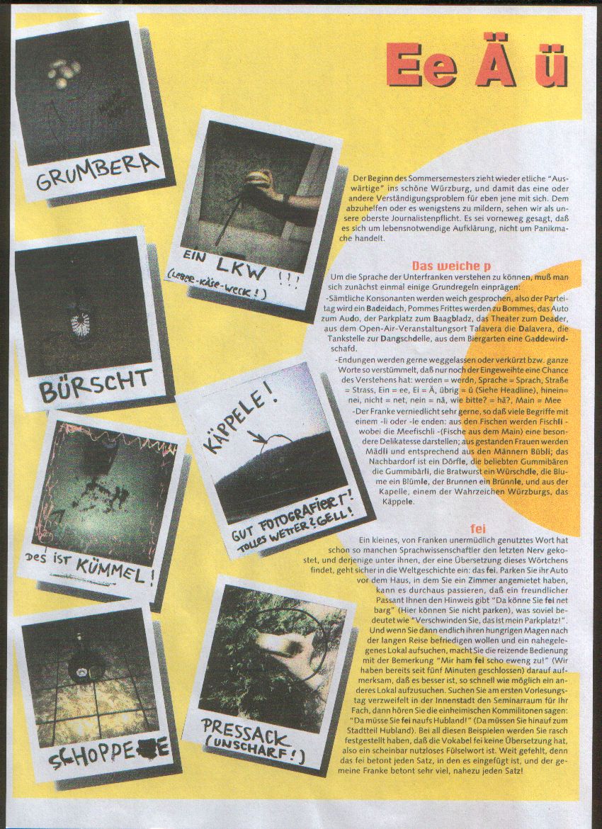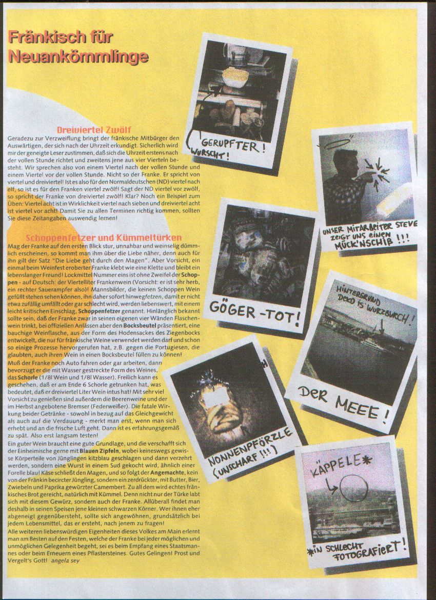 nachdem ja man ein Treffen in Franken veranstalten will, hänge ich mal einen kleinen Kurs in Fränkisch hier aus. Silke lernt auch schön fleißig *gg*