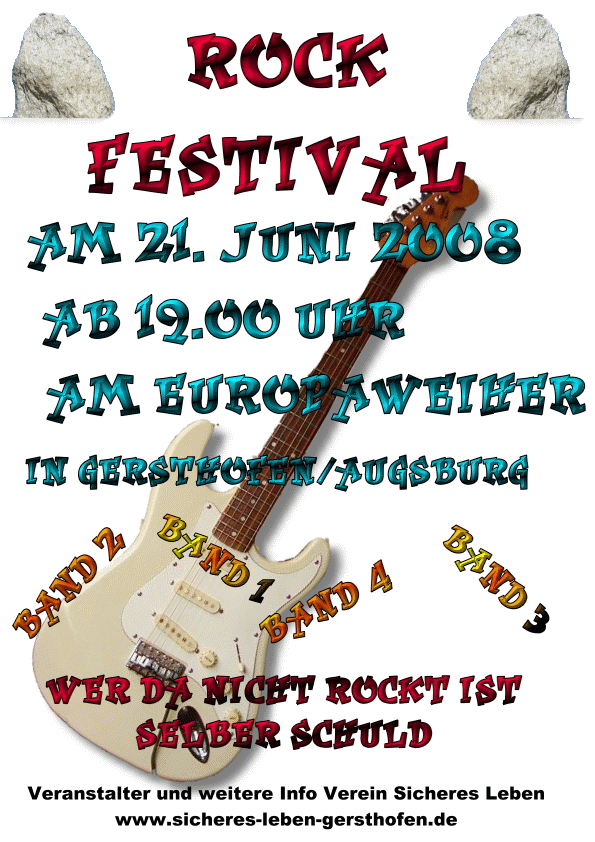 Unser Verein Sicheres Leben e.V. veranstaltet ein Rock Festival und dafür ist das Werbeplakat.