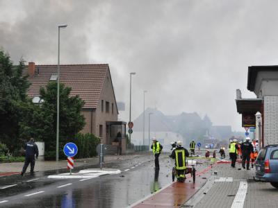 Ein Teil des Gebäudes stürzte ein. In anliegenden Häusern gingen den Angaben zufolge Fensterscheiben zu Bruch. Hochgeschleuderte, faustgroße Steine übersäten im Umkreis von 100 Metern die Straße. Das Haus habe in Flammen gestanden, sagte die Sprecherin. Ein Rauchpilz stieg 100 Meter hoch in den Himmel. Auf einem benachbarten Grundstück begrub ein einstürzender Carport mehrere Autos. Daneben standen Bäume in Flammen. Zwei Nachbarhäuser wurden evakuiert. Insgesamt waren 150 Rettungskräfte im Einsatz.