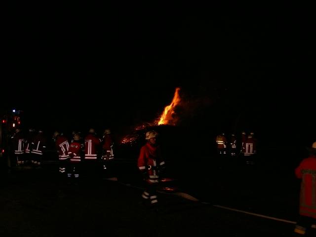 Wunstorf.Wenn es ein solches Unglückgeben würde,wie die Feuerwehr es am Dienstagabendsimuliert hat,dann käme die Stadfeuerwehr an Ihre Grenzen.260 Feuerwehrleute waren im Einsatz bei der größten Übung seit etwa 20 Jahren.Das Szenario war der Absturzeines Flugzeuges,wodurch ein großes Gebäude auf dem Fliegerhorst in Brand geraten war.Der Rumpf des Flugzeuges war auf dem Gelände des ehemaligen Munitionslagers gegenüber dem Fliegerhorst niedergegangen und hatte dort auch noch einen 2000qm großen Wald in Brand gesetzt. Zunächst mussten acht Verletzte gerettet und versorgt werden.Drei Tote waren zu bergen und schliesslich mehrere Brände gleichzeitig zu löschen-und das auch noch unter erschwerten Bedingungen,denn zum Szenario gehörte die Annahme,das auf dem Gelände des Munitionslagers die Wasserversorgung defekt sei.Also mussten die Feuerwehrleute 1600 meter Schlauch verlegen,um Wasser aus Grossenheidorn zu holen.Ausserdem mussten die Feuerwache Wunstorf auch noch bestezt bleiben,um bei einen echten Unglück während der Übung einsatzbereit zu sein.Diese Aufgabe hatte die Kolenfelder Ortswehr übernommen.Stadtbrandmeister Albrecht Meyer sagte gestern,das aus der Übung wertvolle Hinweise zu ziehen seien.So soll zügig der Alarmplan für Fliegerhorsteinsätze überarbeitet werden.Die Ortskenntnisse für das unübersichtlich Gelände seien auch nicht ausreichend.Meyer lobte die Kooperationsbereitschaft des Fliegerhorstes.Der Stadtbrandmeister hatte mit seinem Stellvertreter Volker Kentrat und dem Klein Heidorner Jens Adamskie die Übung ausgearbeitet.