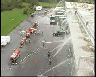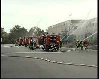 Um ca. 10 Uhr wurden die ersten Einsatzkräfte zu einem vermeidlichen Großbrand in einem Hochregallager für Wäschemittel gerufen. Als die ersten Einsatzkräfte die Einsatzstelle erreichten, stellten sie fest, dass die bisher alarmierten Kräfte nicht ausreichen würden, um einen Brand dieses Ausmaßes zu bekämpfen. Also wurde kurzerhand Vollalarm für die ganze Stadtfeuerwehr ausgerufen. Keine der eingesetzten Feuerwehrkräfte wusste, dass es sich um eine Alarmübung handelte. Das Szenario sah wie folgt aus: Die Lagerhalle sollte in voller Ausdehnung brennen, in der Halle sind Gefahrenstoffe gelagert und 3 Mitarbeiter wurden vermisst. Die Aufgabe der Feuerwehr bestand zunächst darin die vermissen Mitarbeiter zu finden und zu retten. Zeitgleich wurde schnellstmöglich eine Brandbekämpfung von allen Seiten eingeleitet. Damit keine imaginären Gefahrenstoffe das Gelände verlassen konnten, mussten Gullys abgedichtet werden – um eine „Brandausbreitung“ zu verhindern und Nachbargebäude geschützt werden. Die Feuerwehr wurde bis an die Belastungsgrenzen gefordert. Der Sinn der Übung bestand darin, dass die Einsatzbereitschaft der Feuerwehr bei Großschadenslagen, wie diesen geprüft werden sollte. Innerhalb weniger Minuten waren über 120 Einsatzkräfte der Feuerwehr mit 27 Fahrzeugen vor Ort und bewiesen, dass sie auch dieser Aufgabe gewachsen sind. Es wurden bis zu 4500 Liter Wasser pro Minute auf das Gebäude abgegeben. Der Verlauf der Übung kann als positiv bewertet werden, eine ausführliche Nachbesprechung wird später erfolgen.