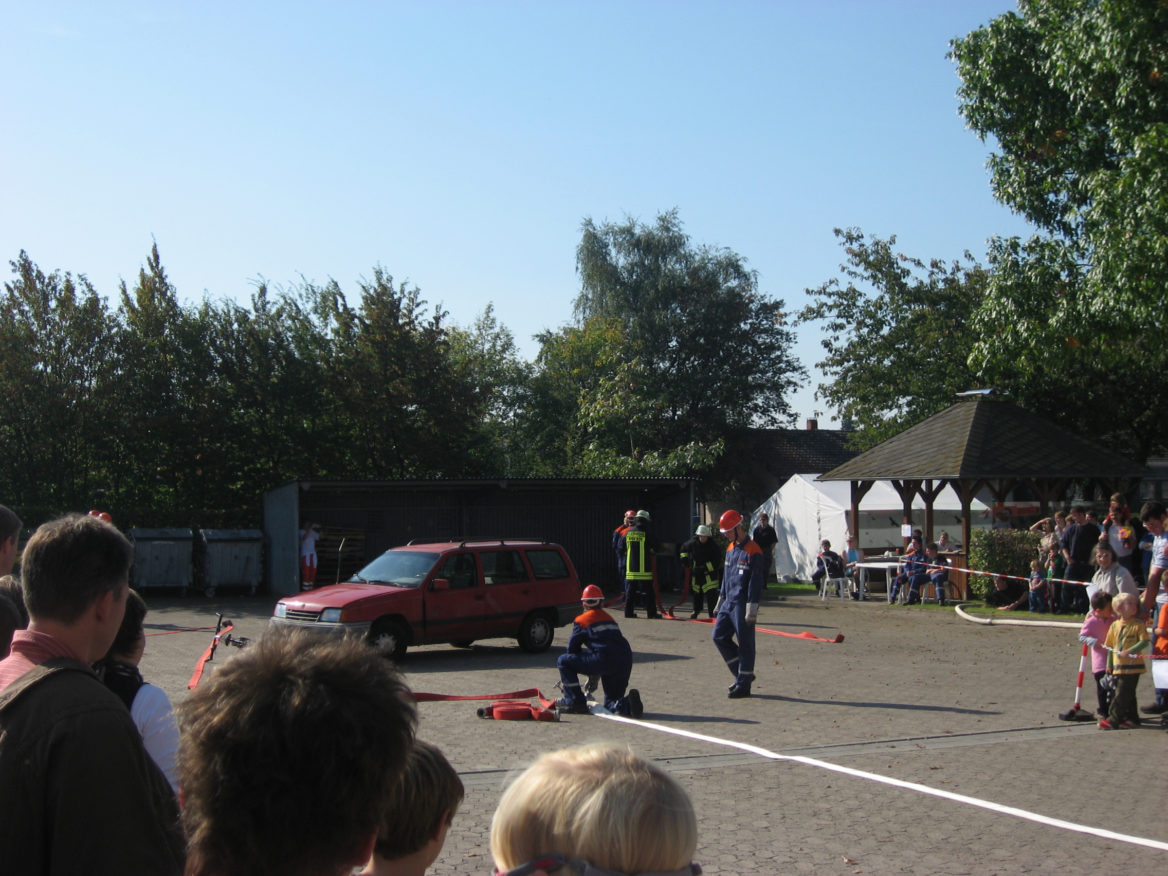 Da wo die Vorführfläche ist, dort stand mal ein Gebäude wo die Fahrzeuge der Freiwilligen untergebracht waren