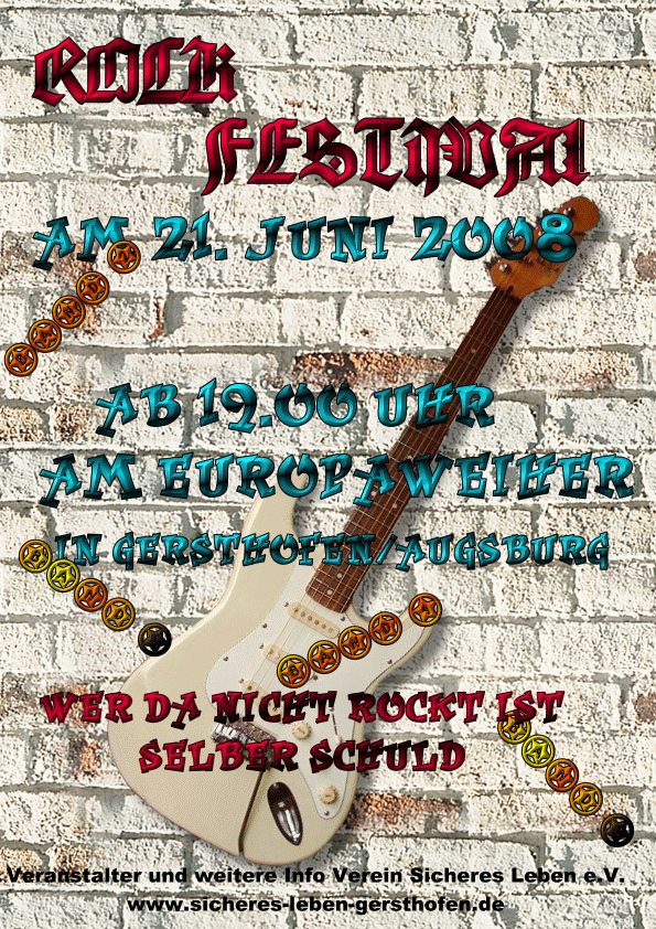 Unser Verein Sicheres Leben e.V. veranstaltet ein Rock Festival und dafür ist das Werbeplakat.