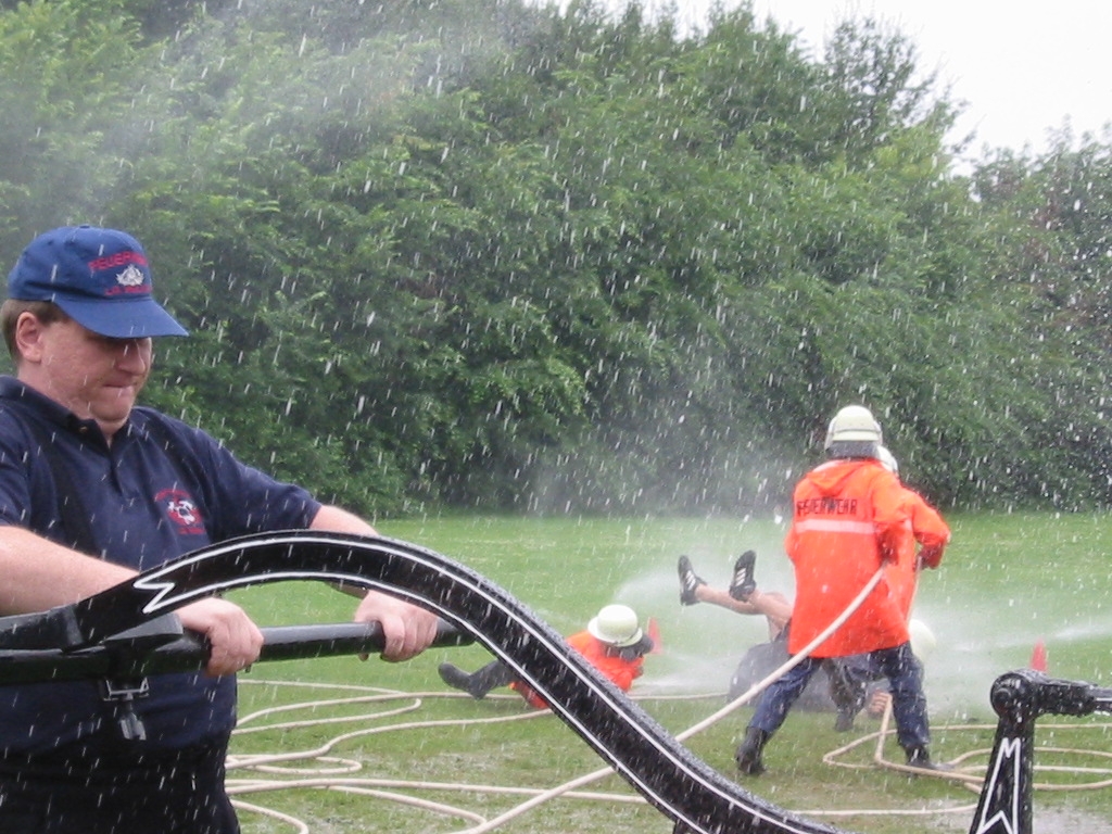 Es wurde mit den alten Handdruckspritzen , die es bei uns noch gibt Zu Ausstellungen),