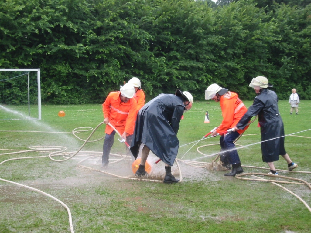 Selbst wenn man geflogen ist, der Rasen war so weich vom Wasser, das nicht viel passiert ist.