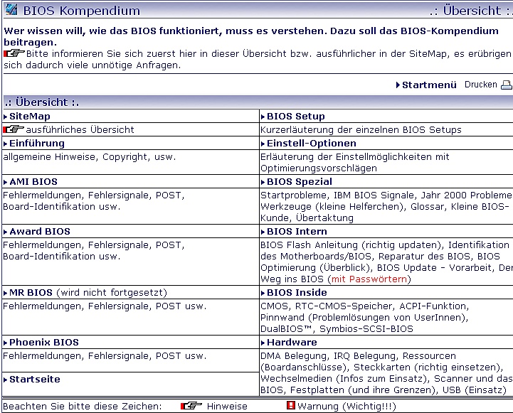 Das Bios-Kompendium gibt Ihnen viele Tipps und Grundlageninformationen zu Ihrem Bios. Die deutschsprachige Freeware ist unterteilt in Themenbereiche wie "AMI", "Award", "MR BIOS", "Phoenix", "Hardware", "Optionen" sowie "Bios-Setup" und bietet eine Suchfunktion. Zusätzlich liefert das Utility zahlreiche Tipps und Tricks zur Fehlerbehebung und zum......