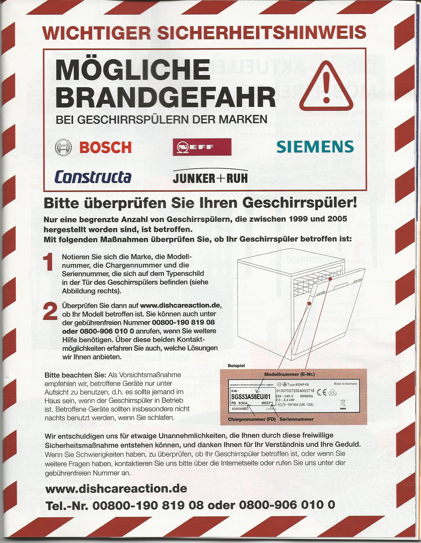 Zum Ende der Seite springen Mögliche Brandgefahr bei Geschirrspülern 1 Bewertungen - Durchschnitt: 10,001 Bewertungen - Durchschnitt: 10,001 Bewertungen - Durchschnitt: 10,001 Bewertungen - Durchschnitt: 10,001 Bewertungen - Durchschnitt: 10,00